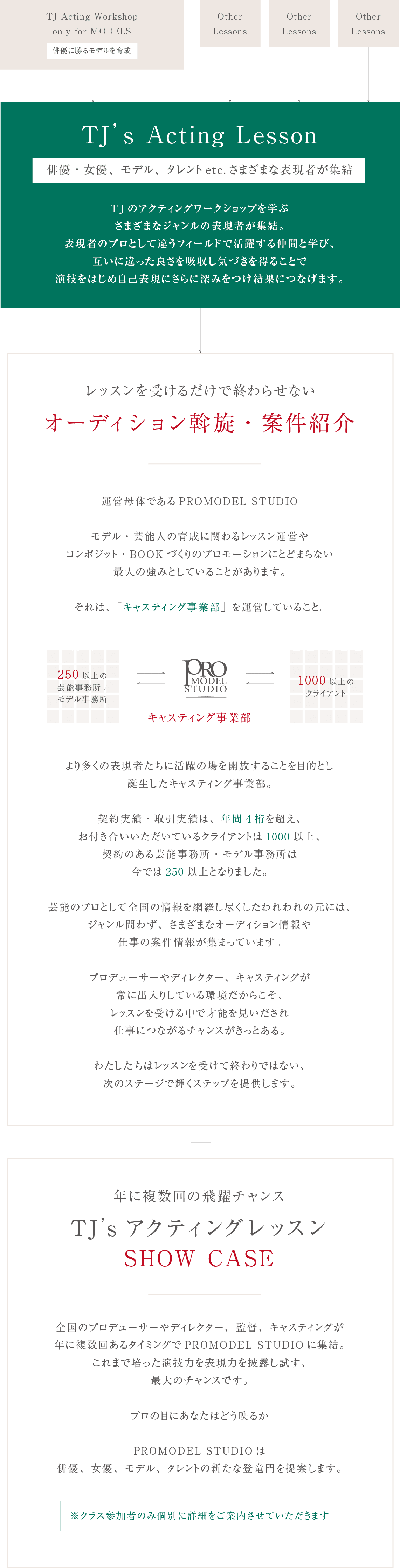 アクティングコーチとして心理学や哲学を取り入れたTJメソッドを確立し